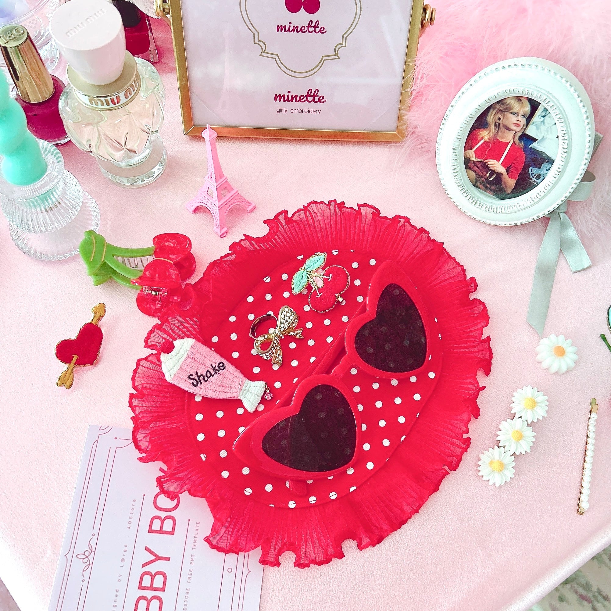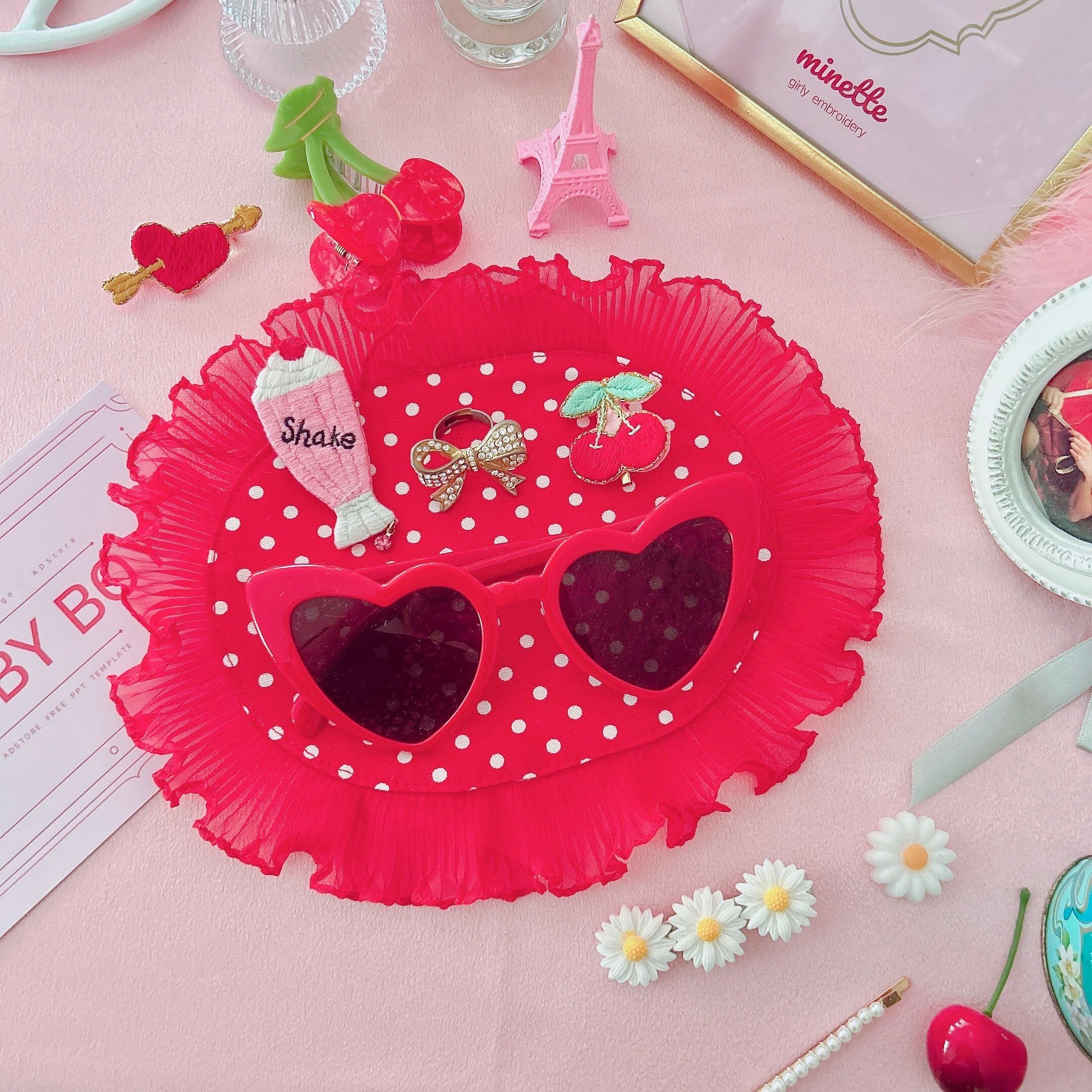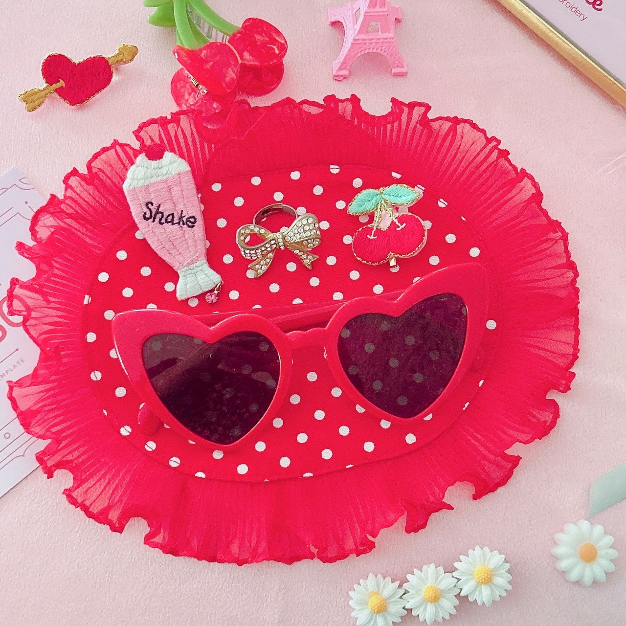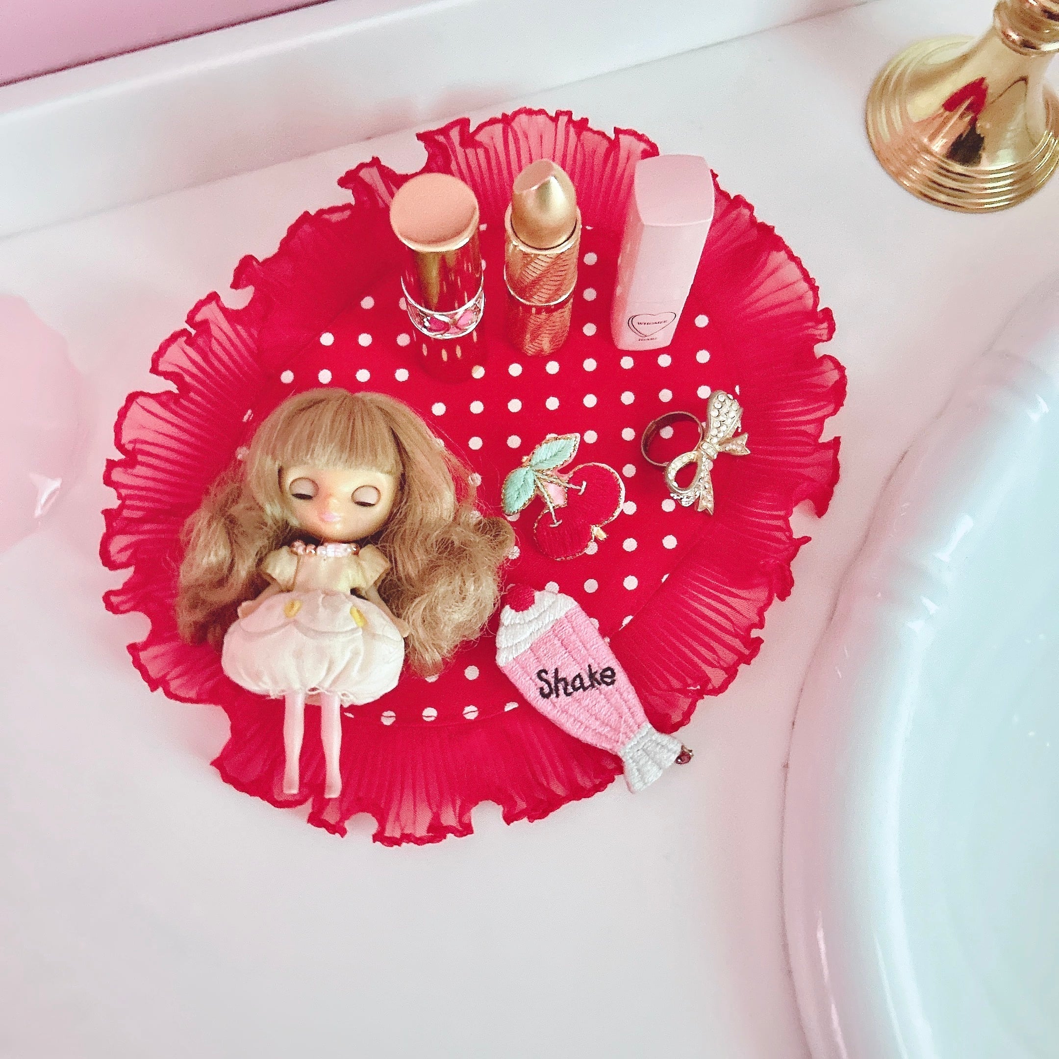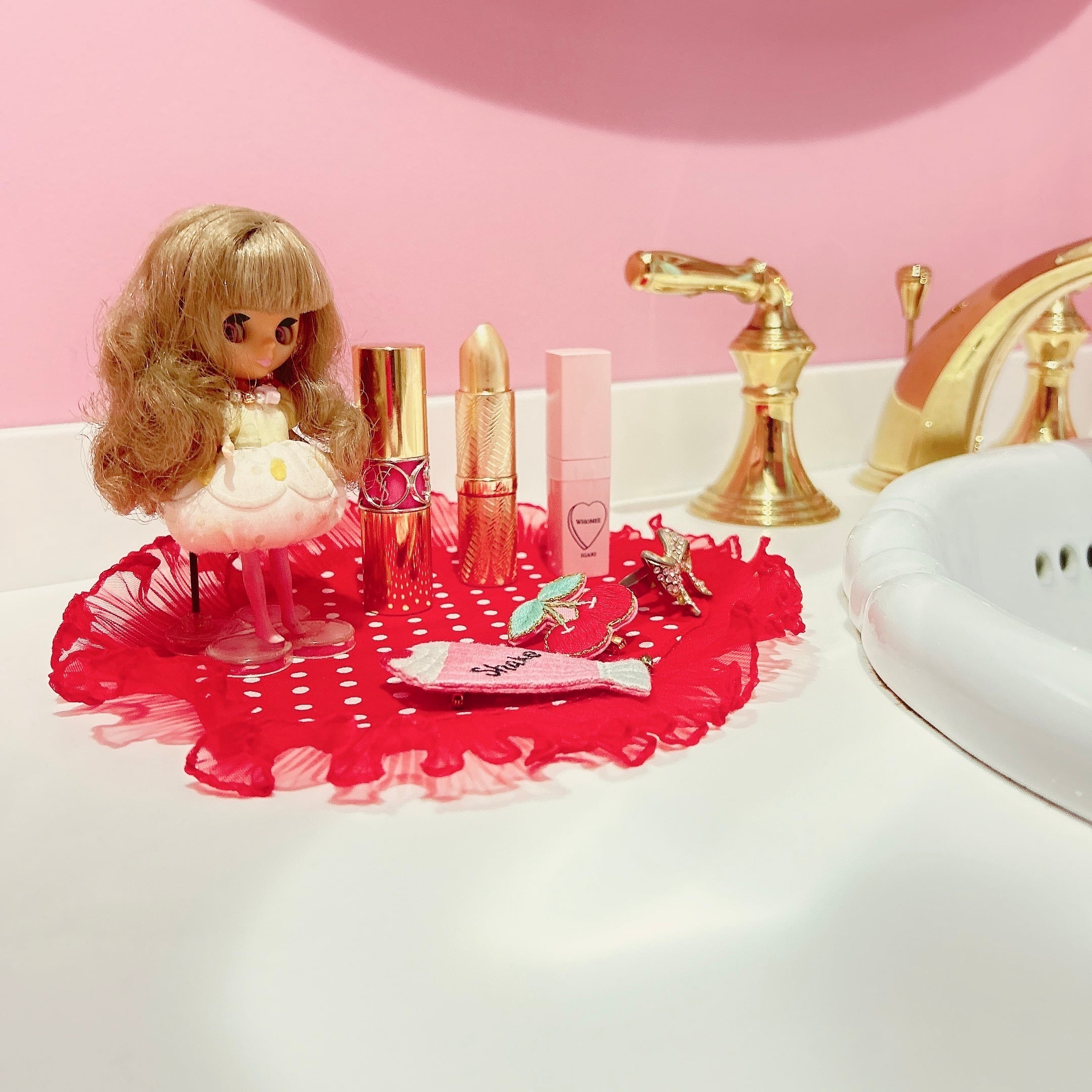 この敷物の上にお気に入りの人形を置いてみたり、アクセサリー置き場にしたり、棚の上に乱雑に置かれたものも可愛い敷物の上に置けばそれだけでお部屋が可愛くなります!