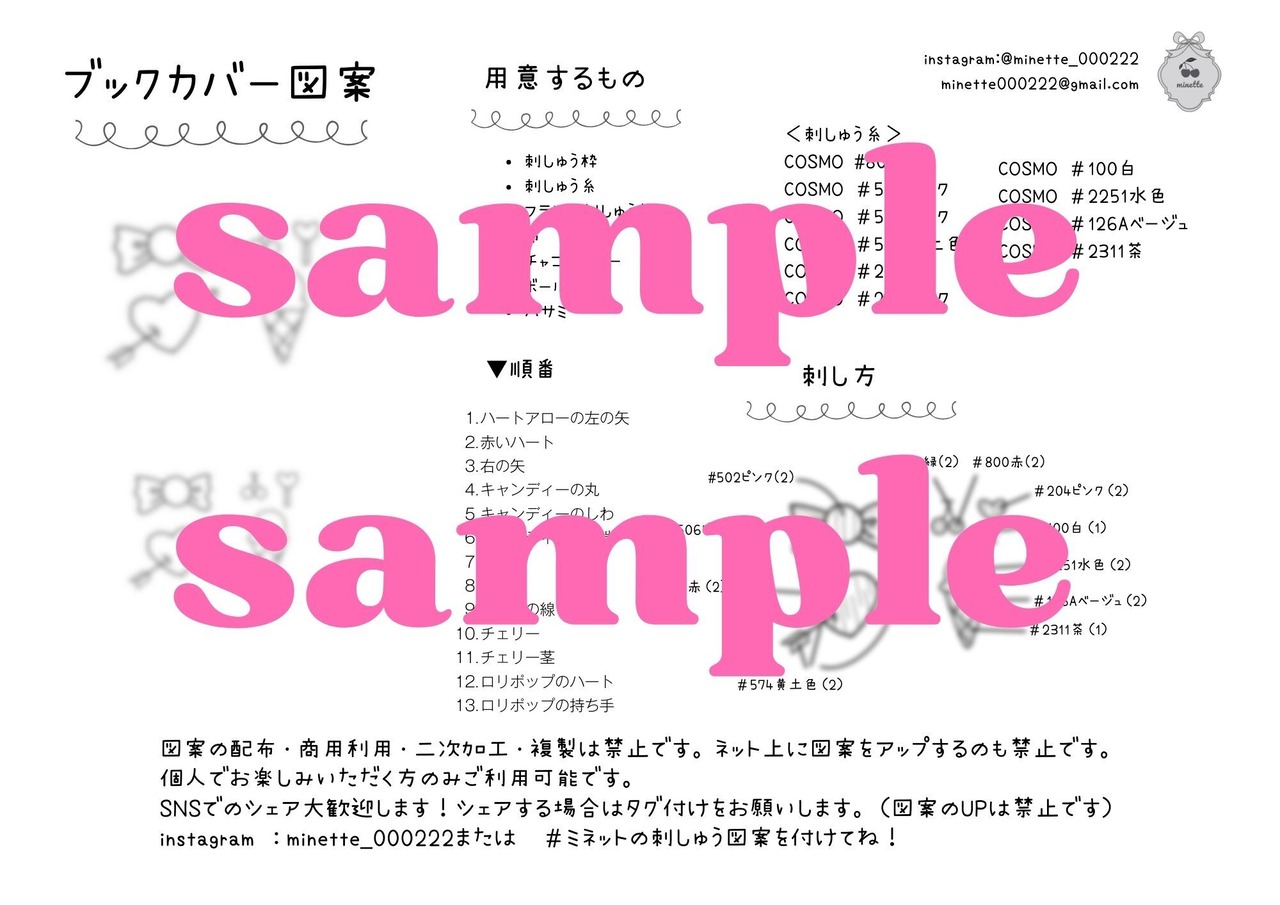 instagram :minette_000222または #ミネットの刺しゅう図案 を付けてね!