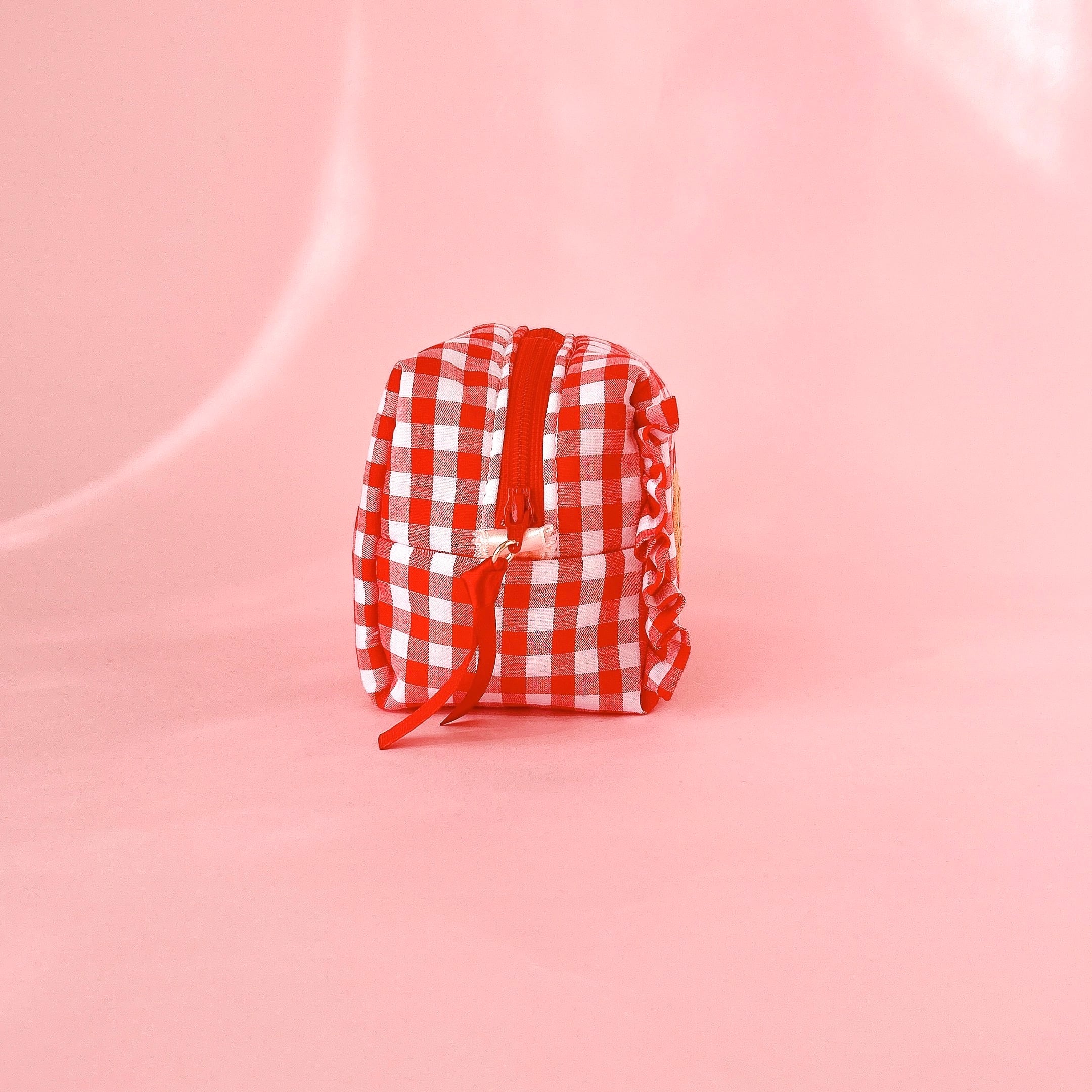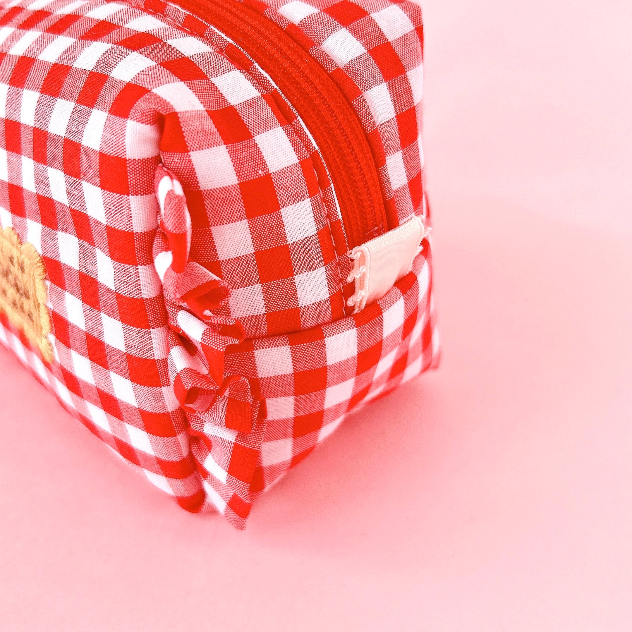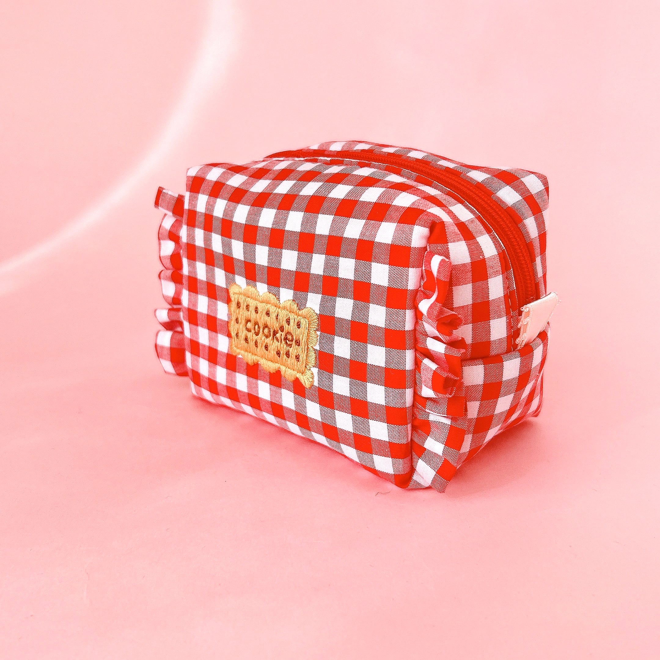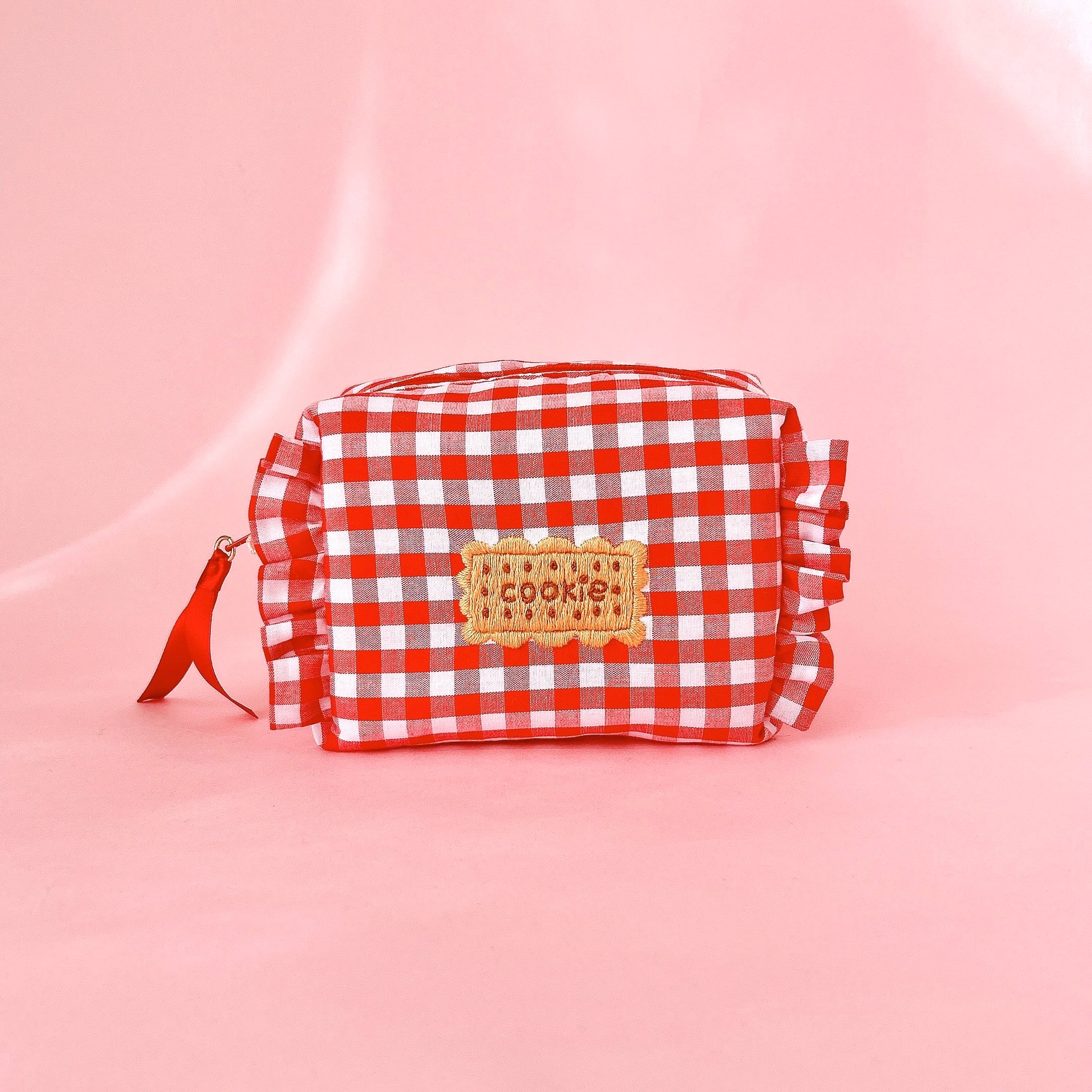 ボックスポーチ(赤ギンガム/クッキー刺繍)