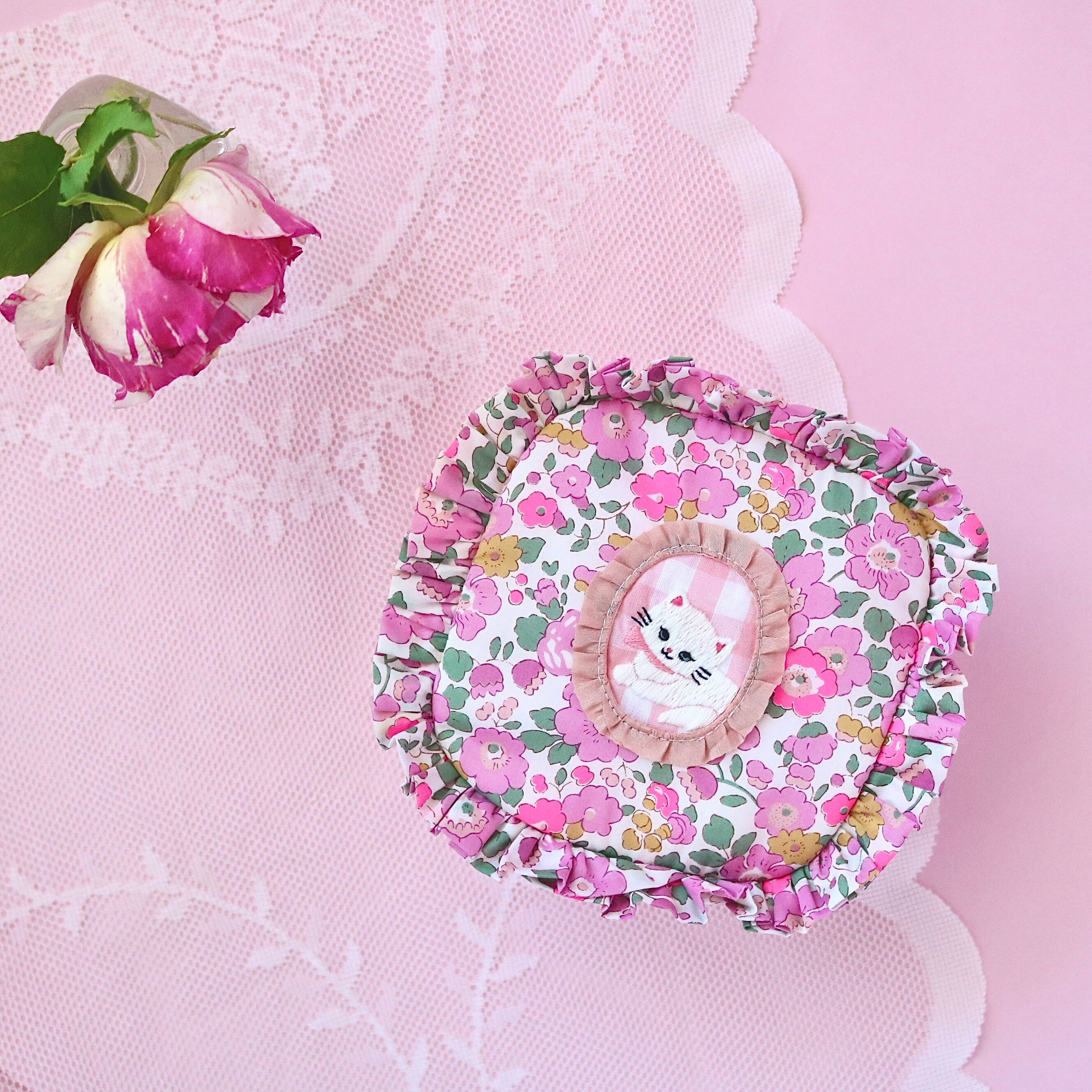 リバティスクエアポーチ(ネオンリバティ/ネコ刺繍)