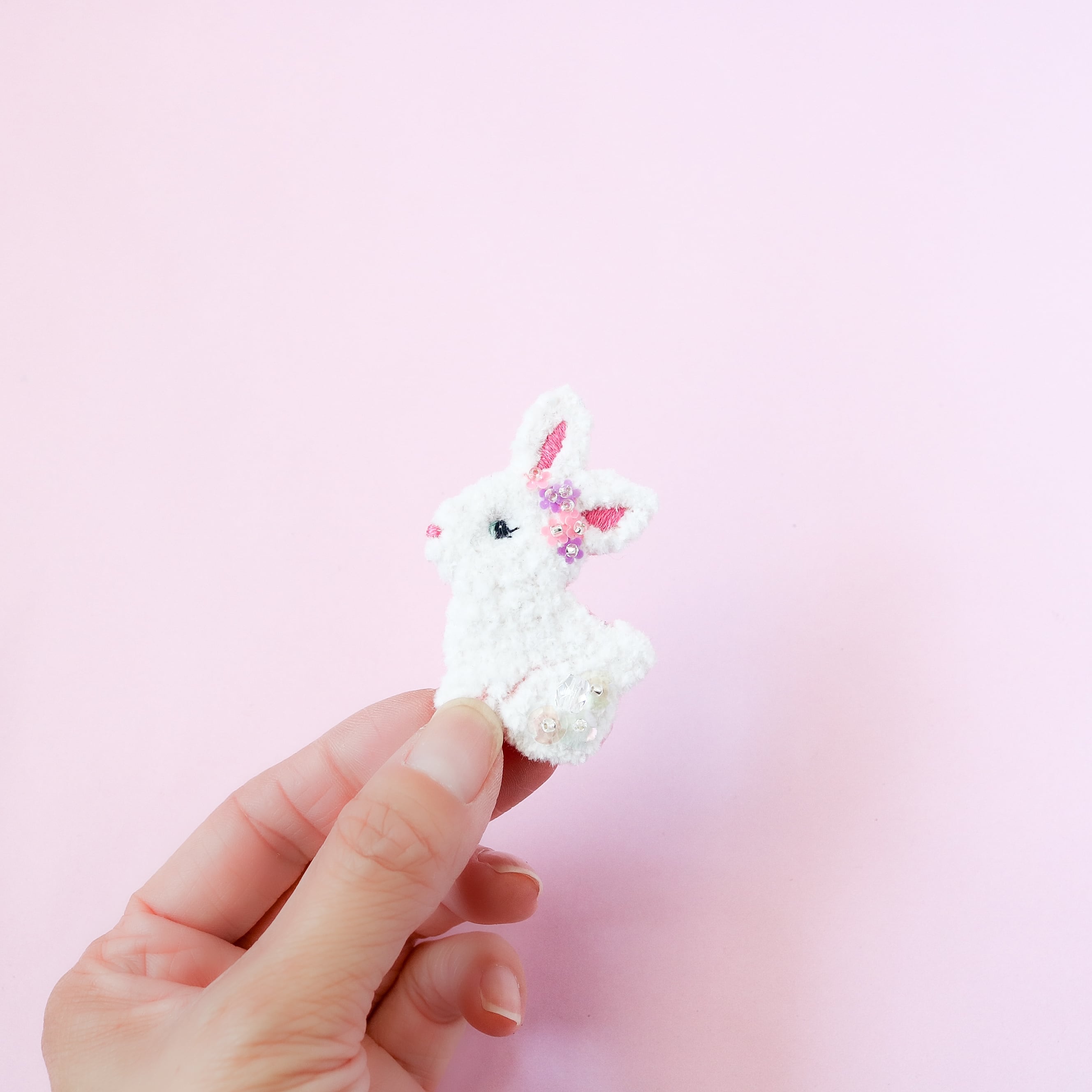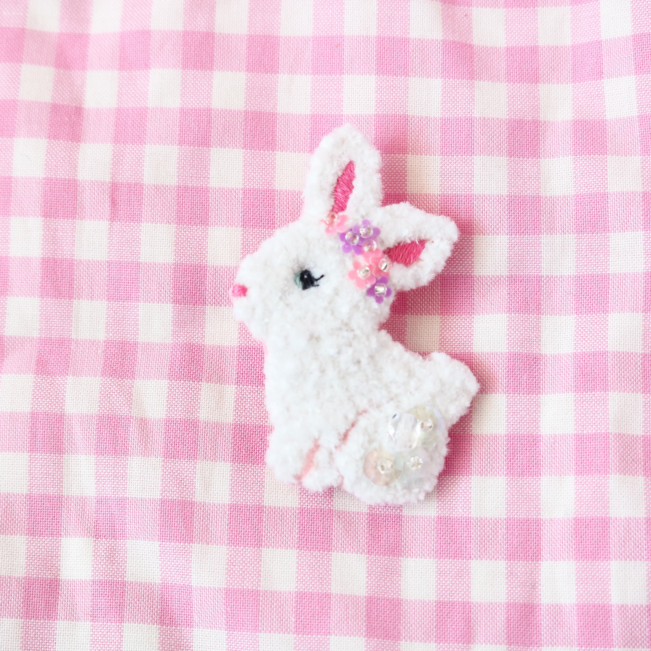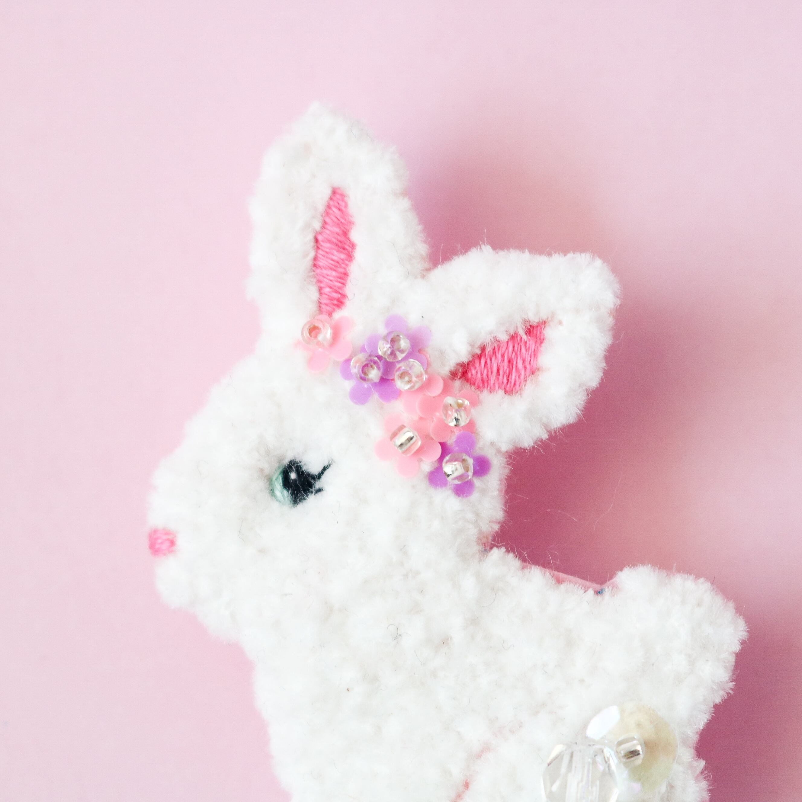まつ毛も刺繍してガーリーなうさちゃんの完成です!