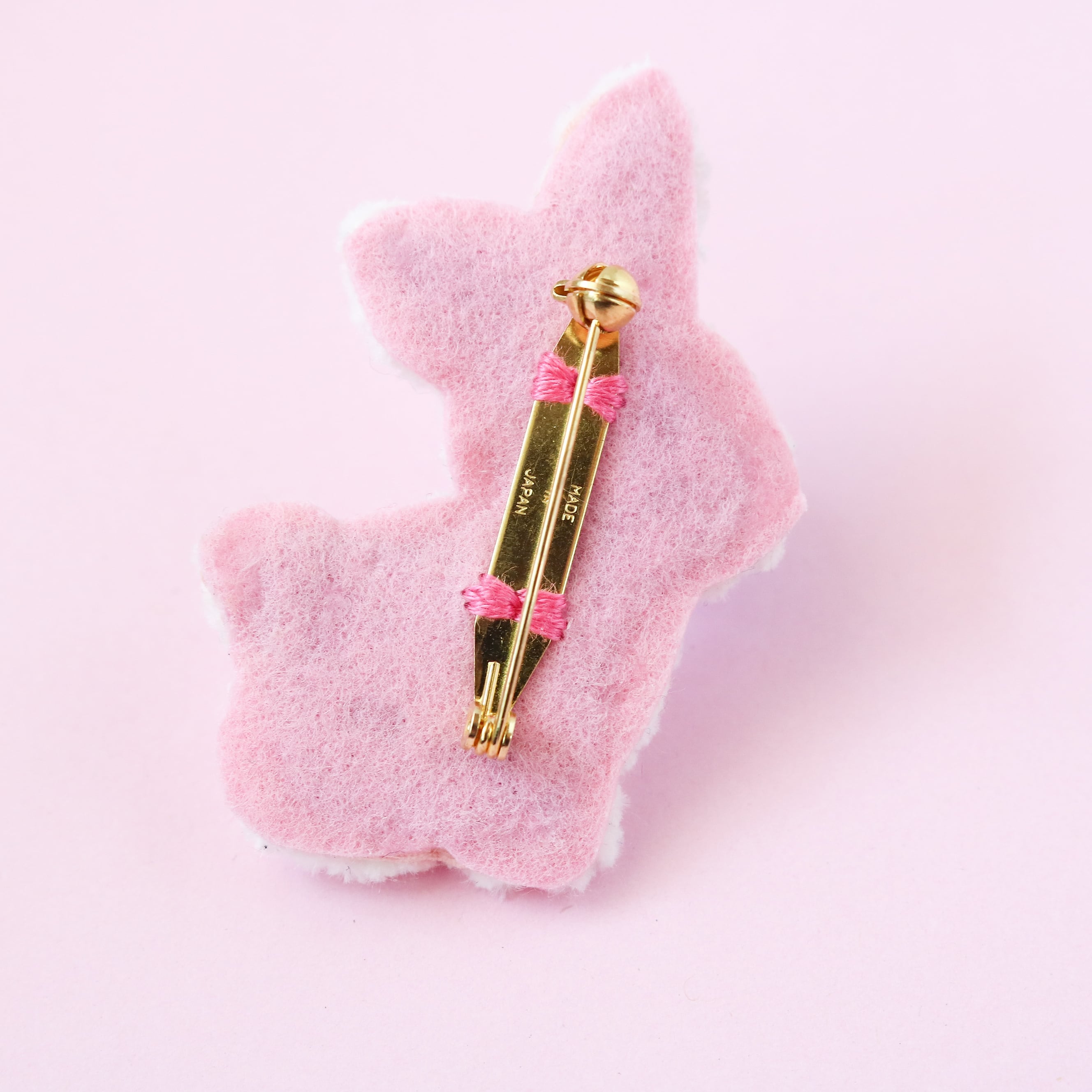 裏面はフエルト生地にブローチピンを固定しています。