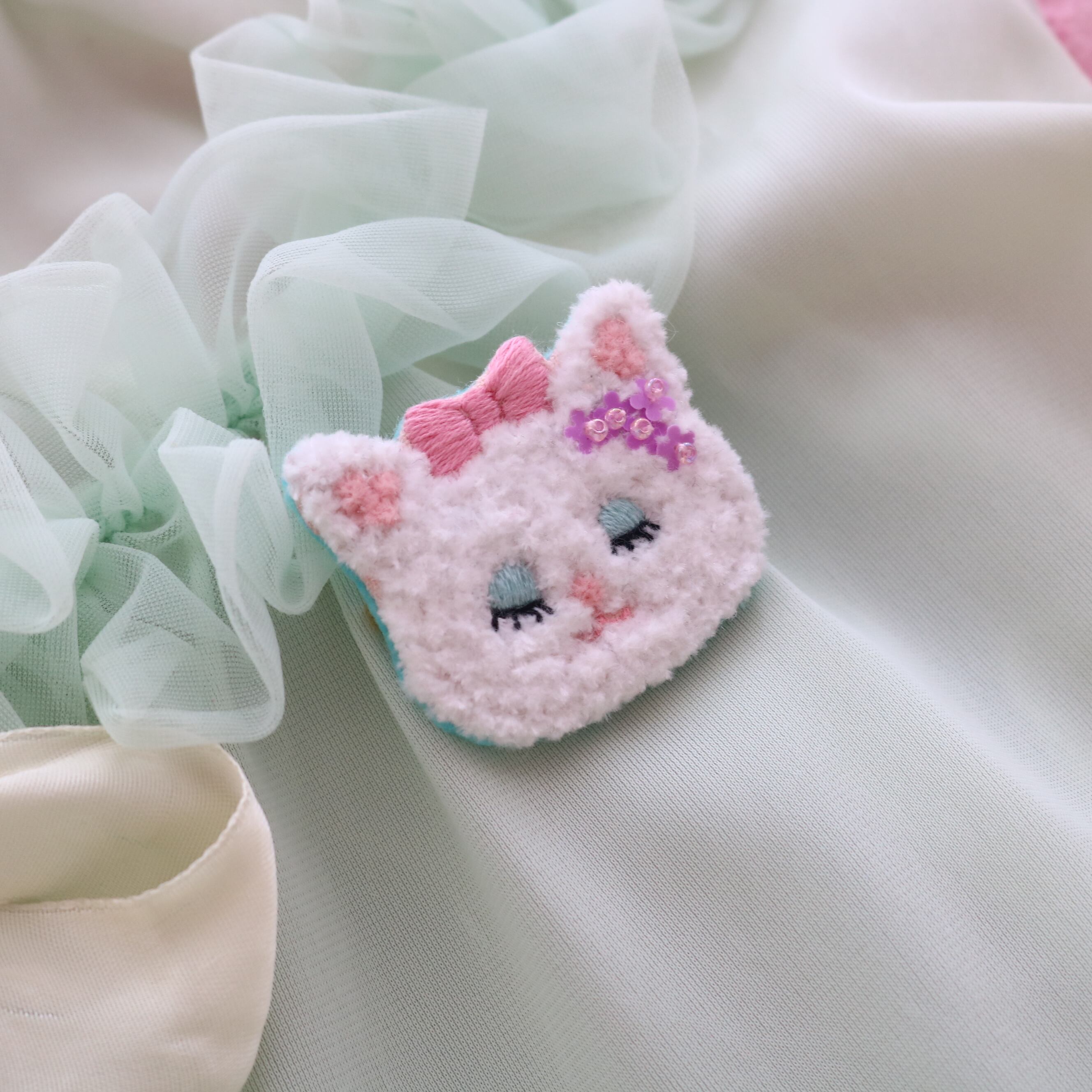 頭の上にはリボンを刺繍して、さらにお耳にもお花のスパンコールをあしらって