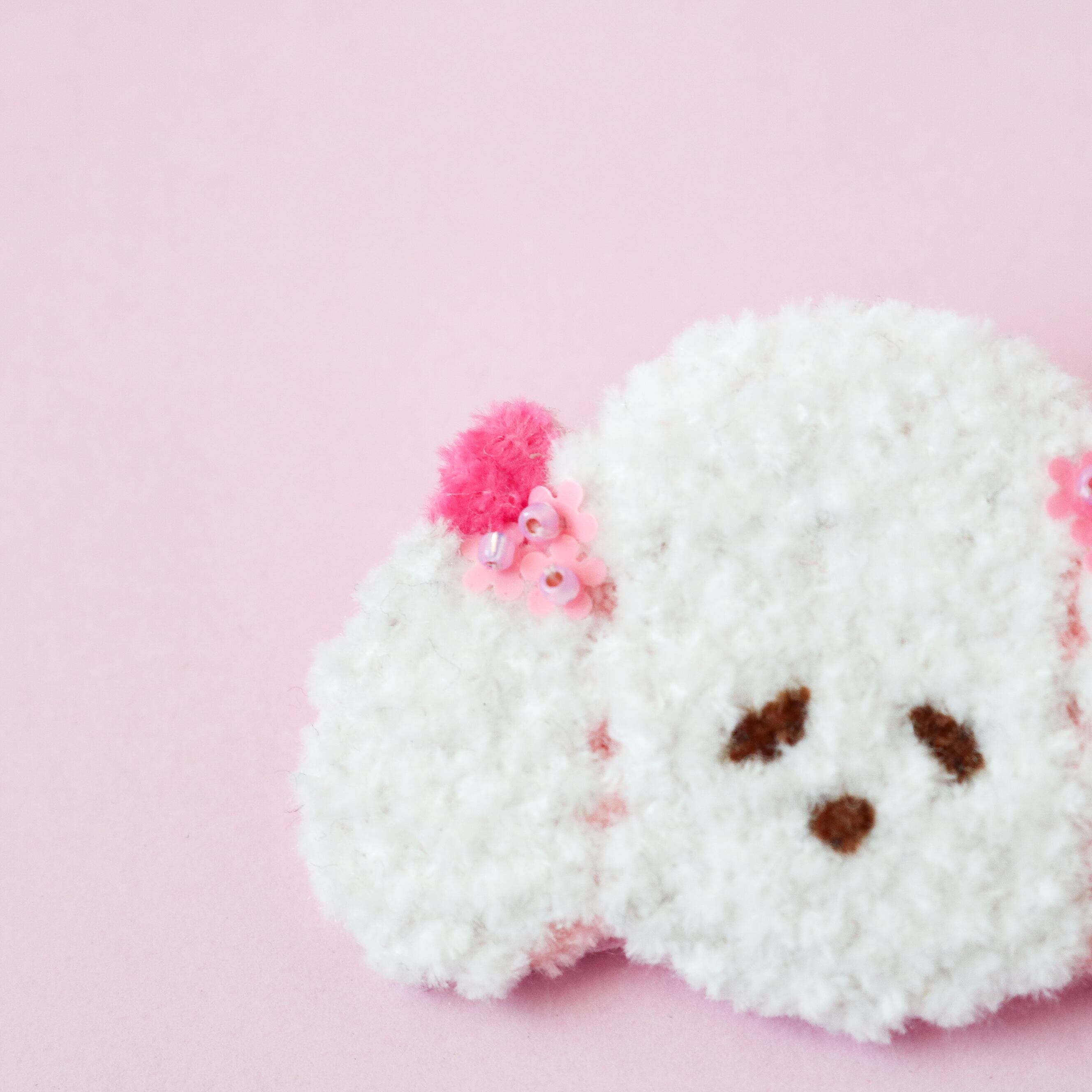 モコモコの毛糸で刺繍したのでファーのようにふわふわ