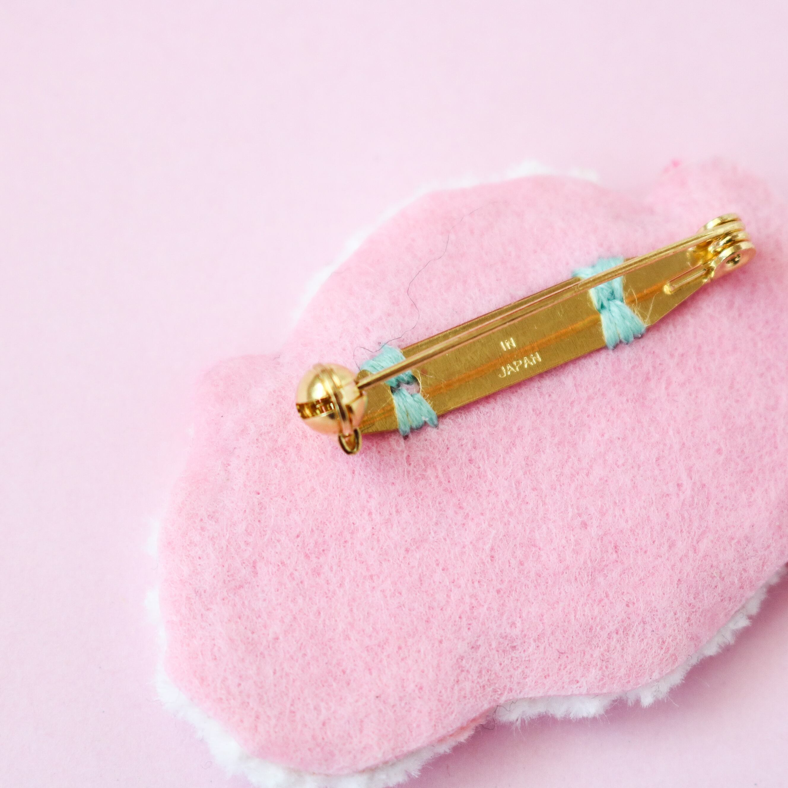 裏面はフエルト生地にブローチピンを固定しています。