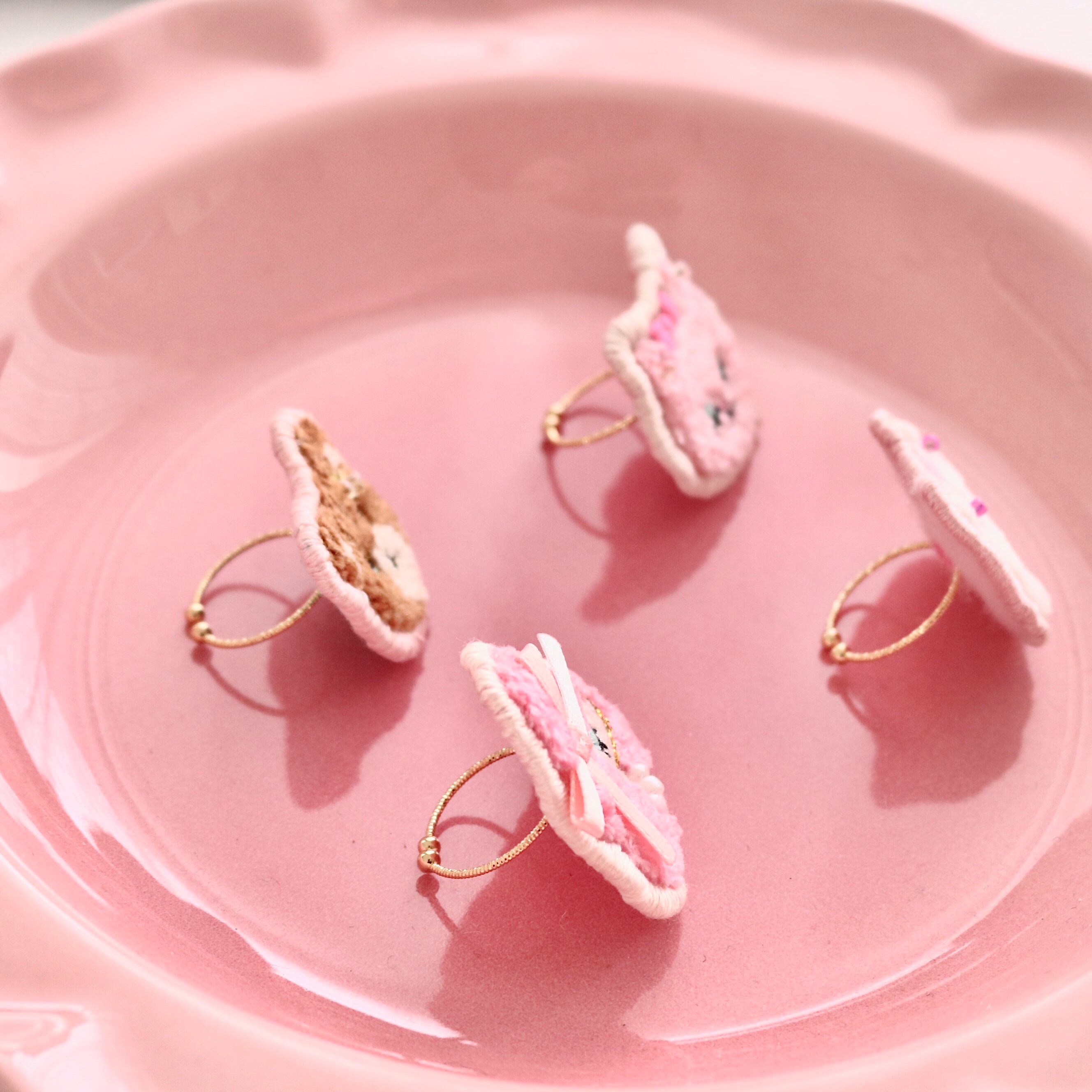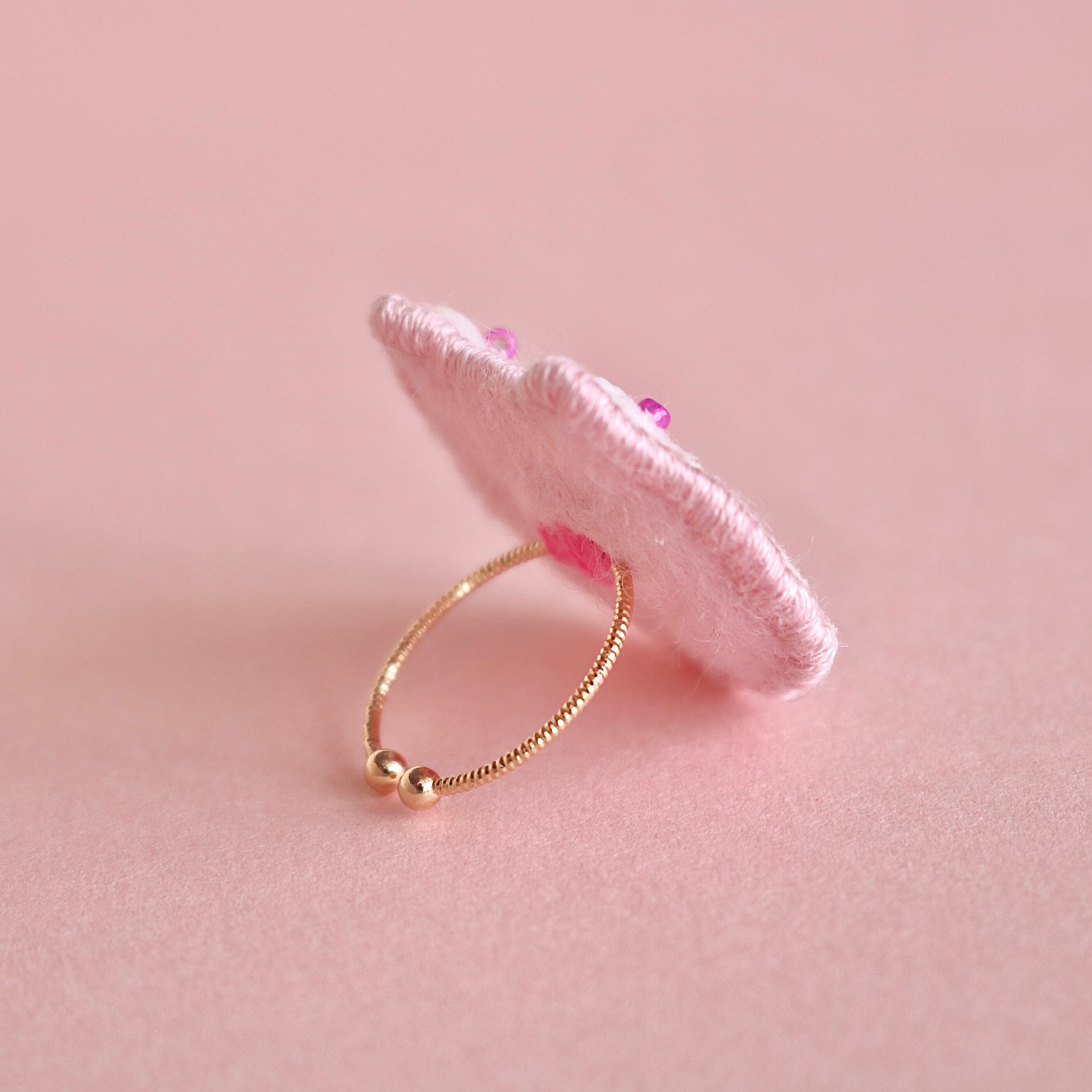 スミルナステッチという技法で仕上げた刺繍リングになります。