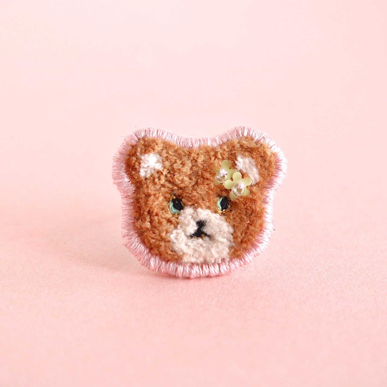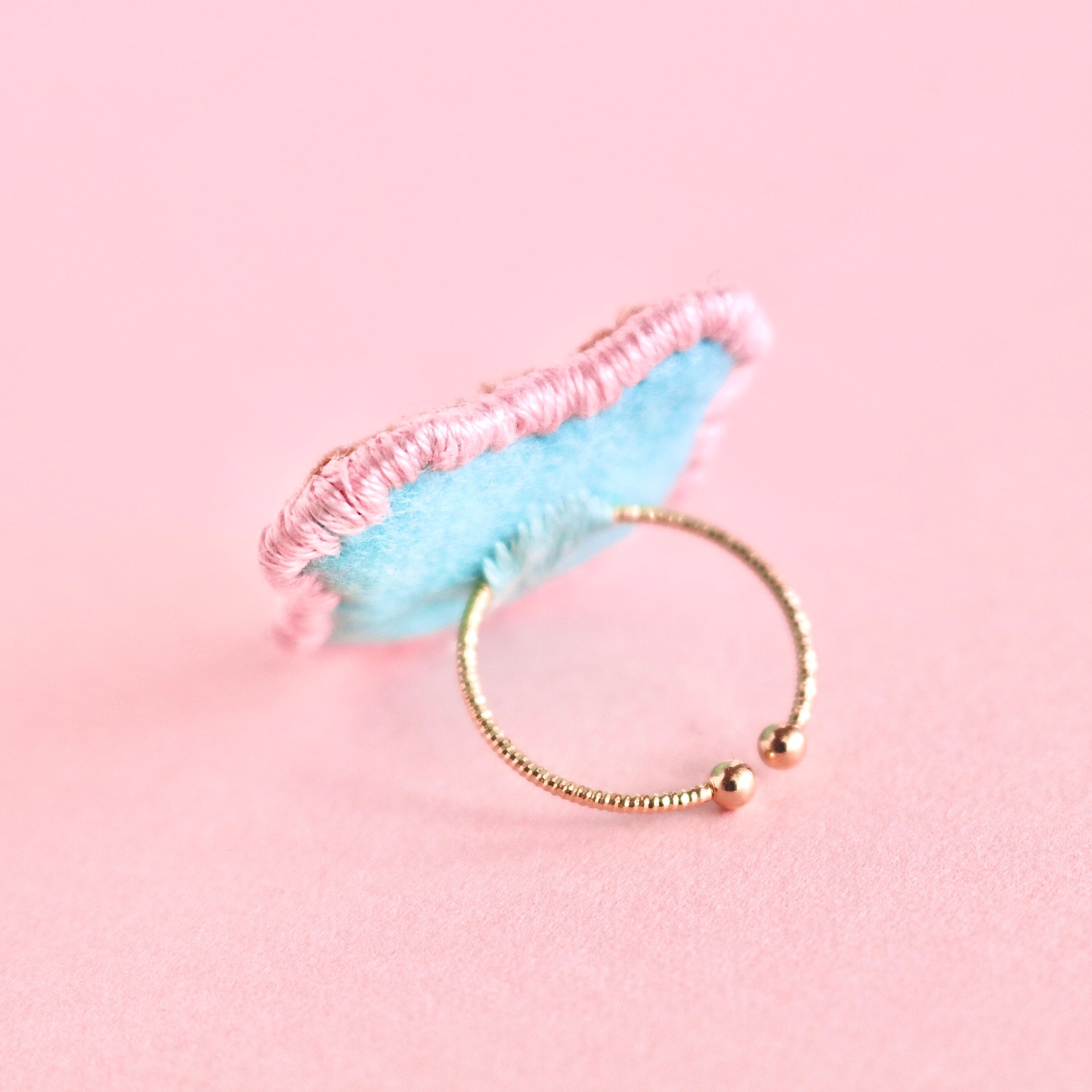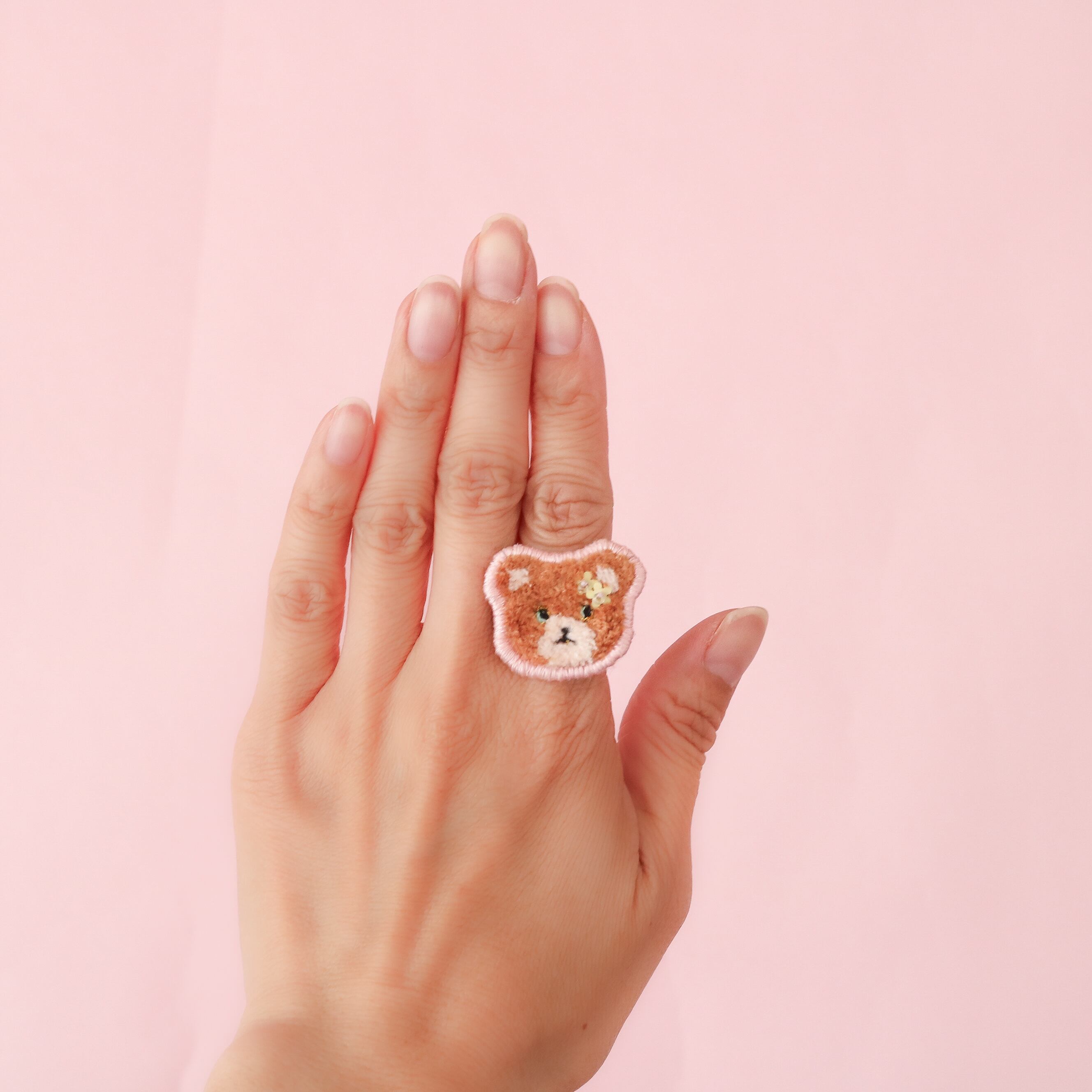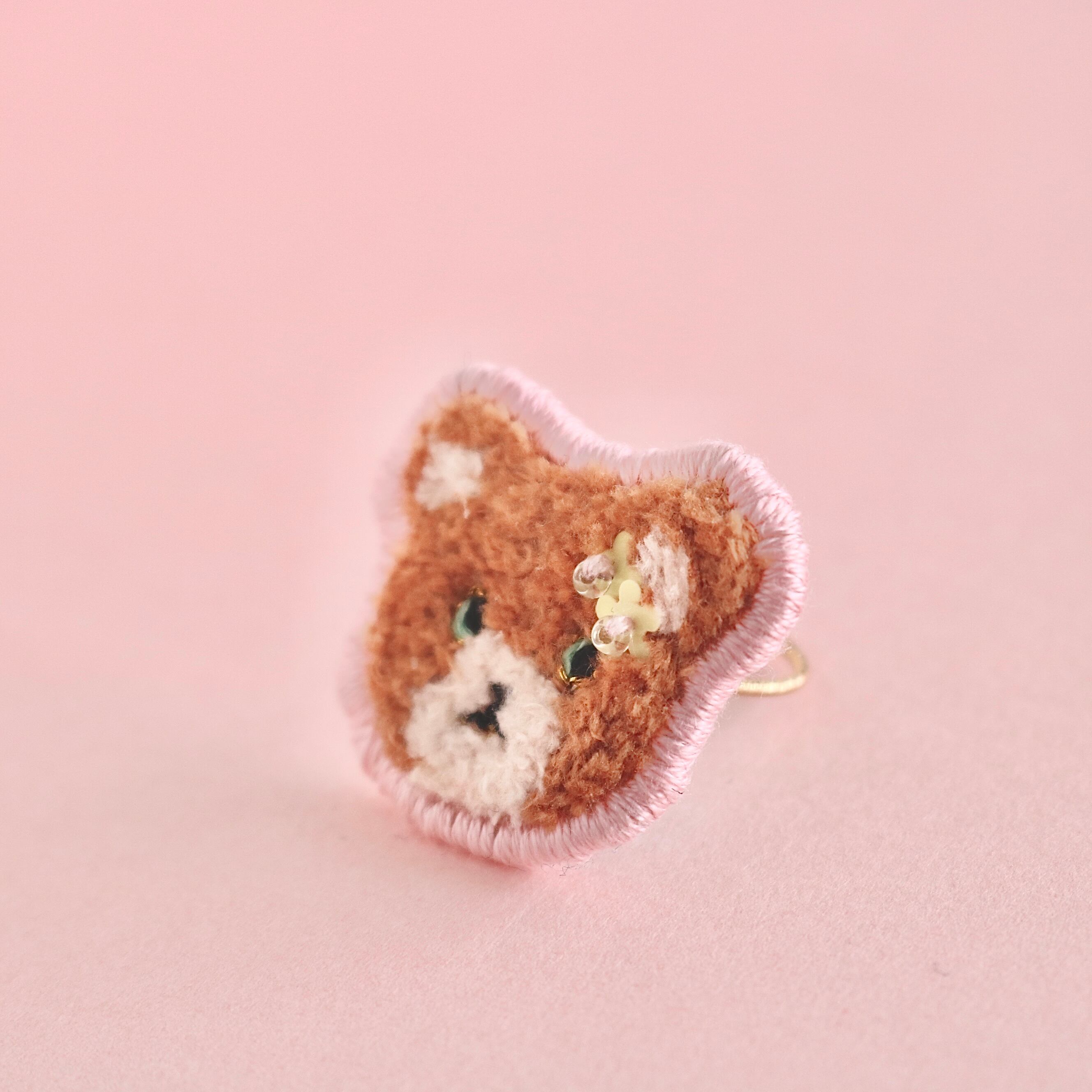 モコモコとした仕上がりの刺繍リングは