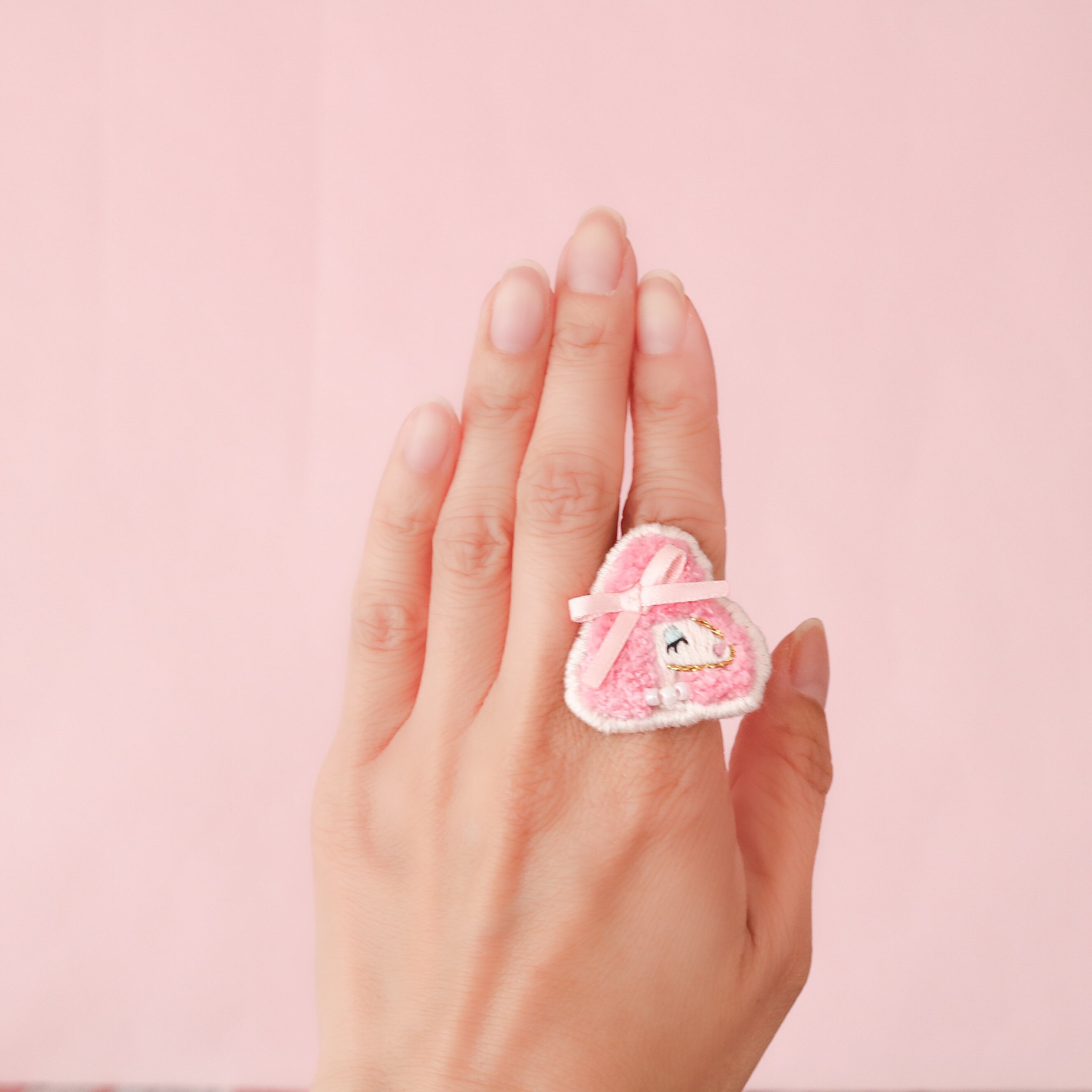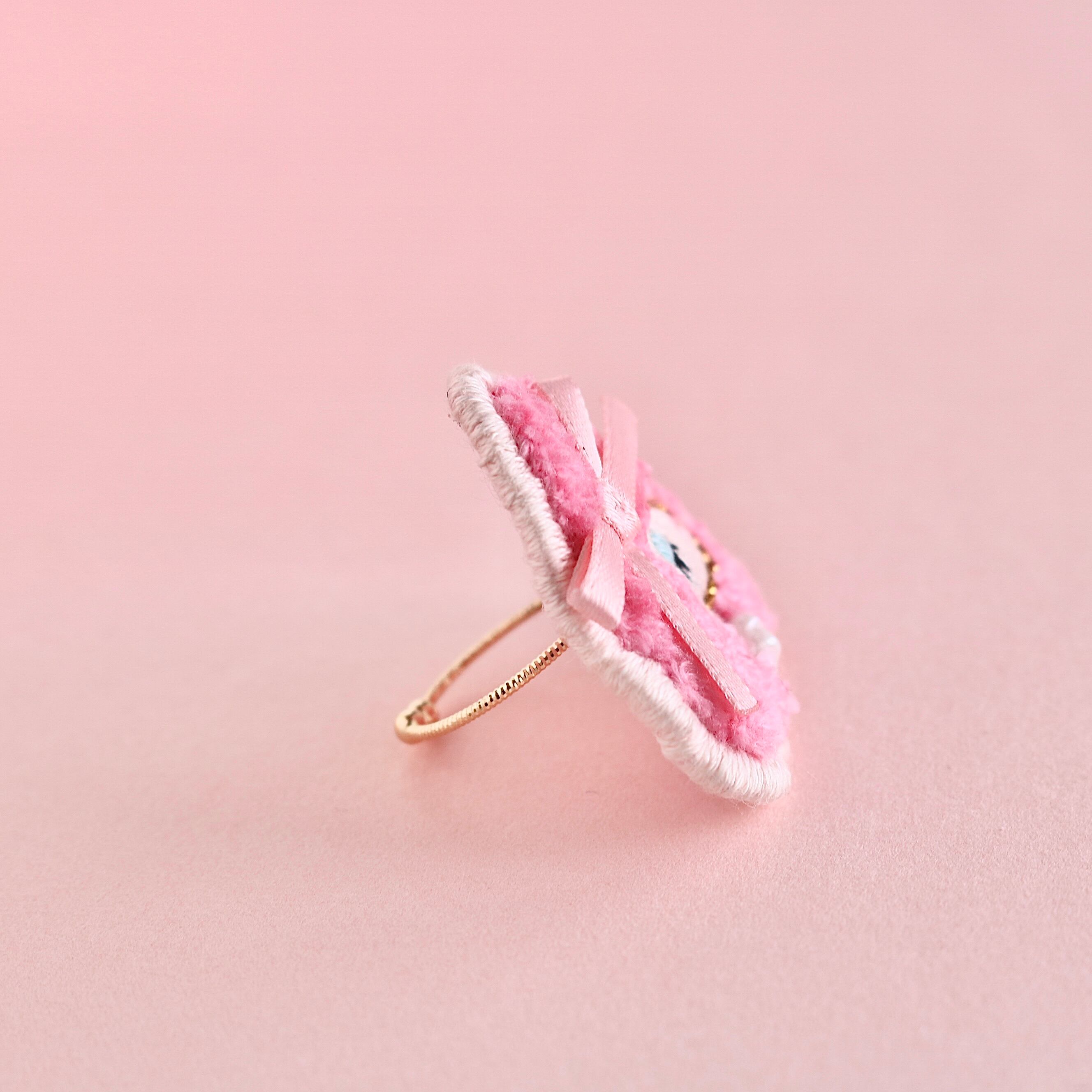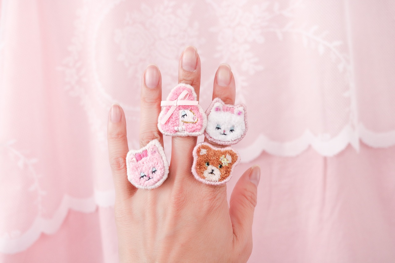 モコモコとした仕上がりの刺繍リングは
