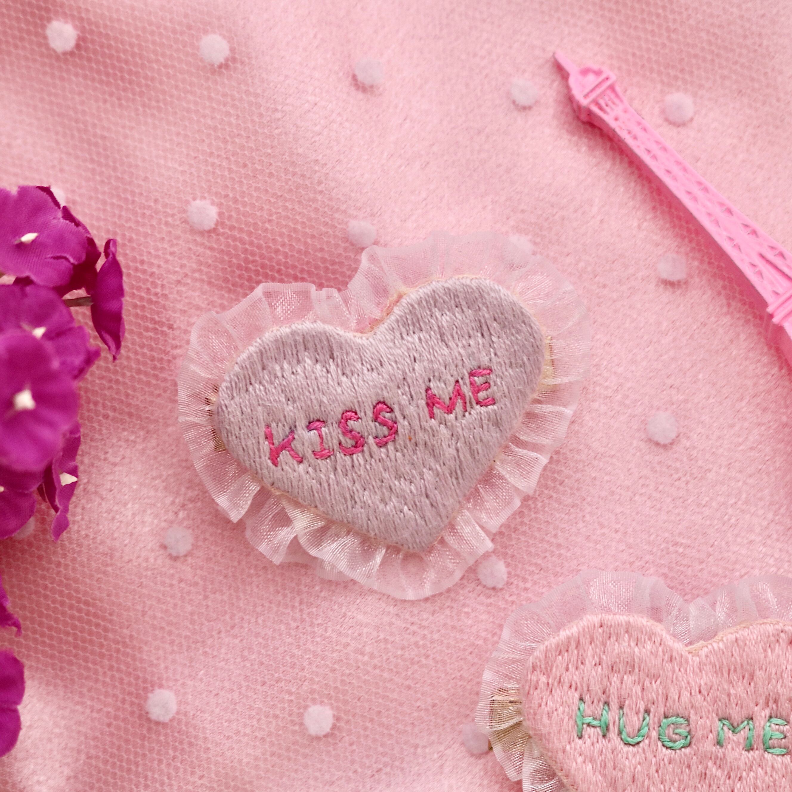 ハートの真ん中にKISS MEの文字入り