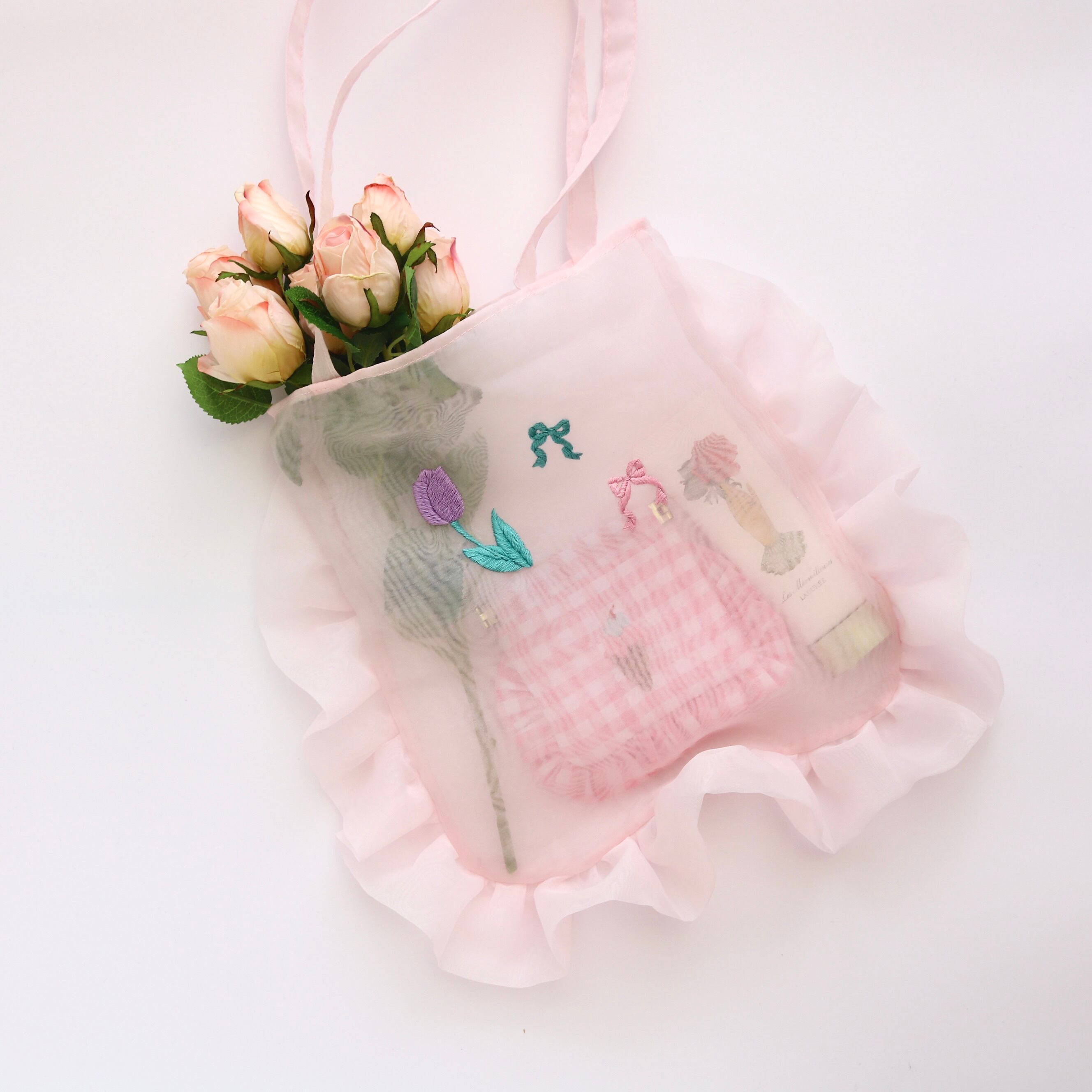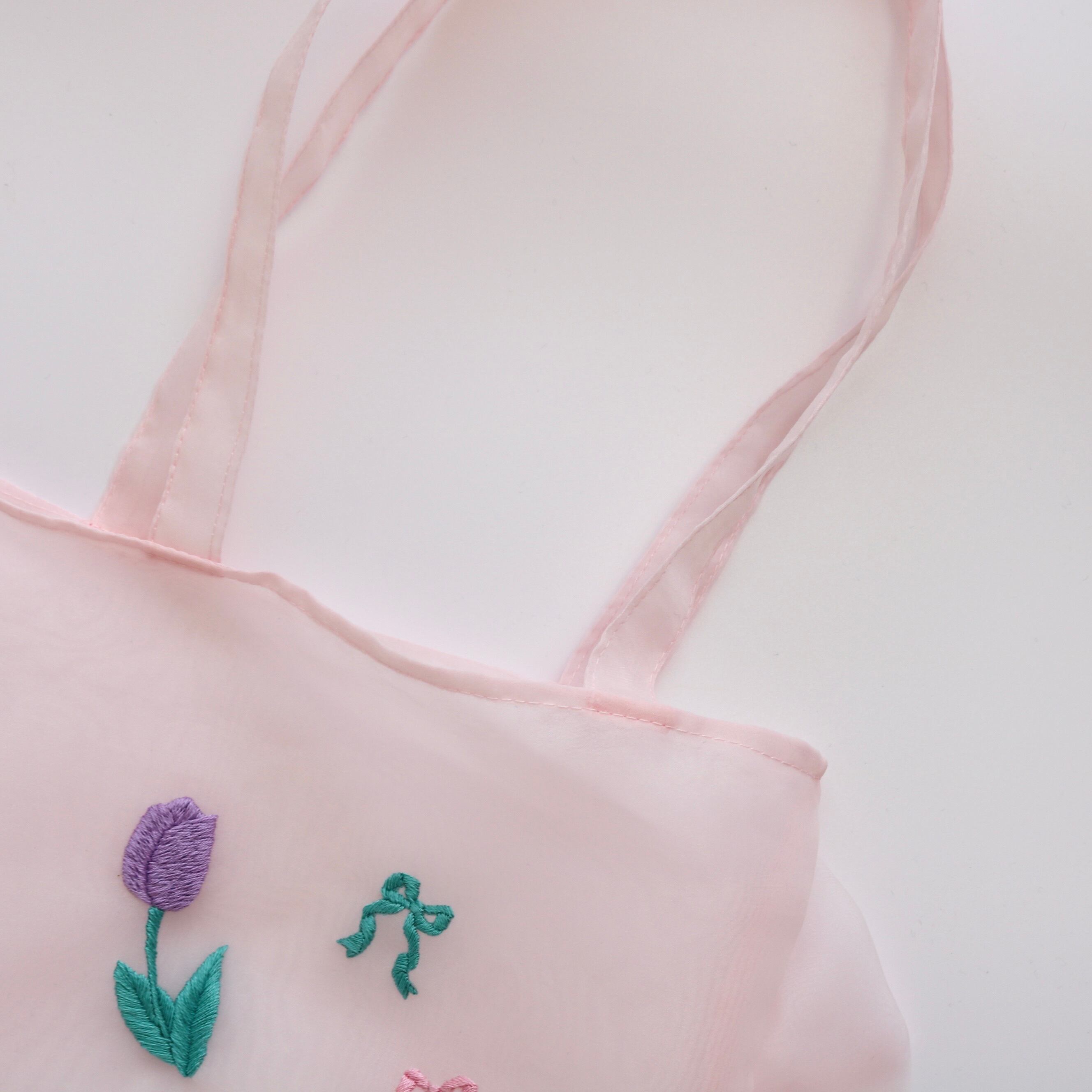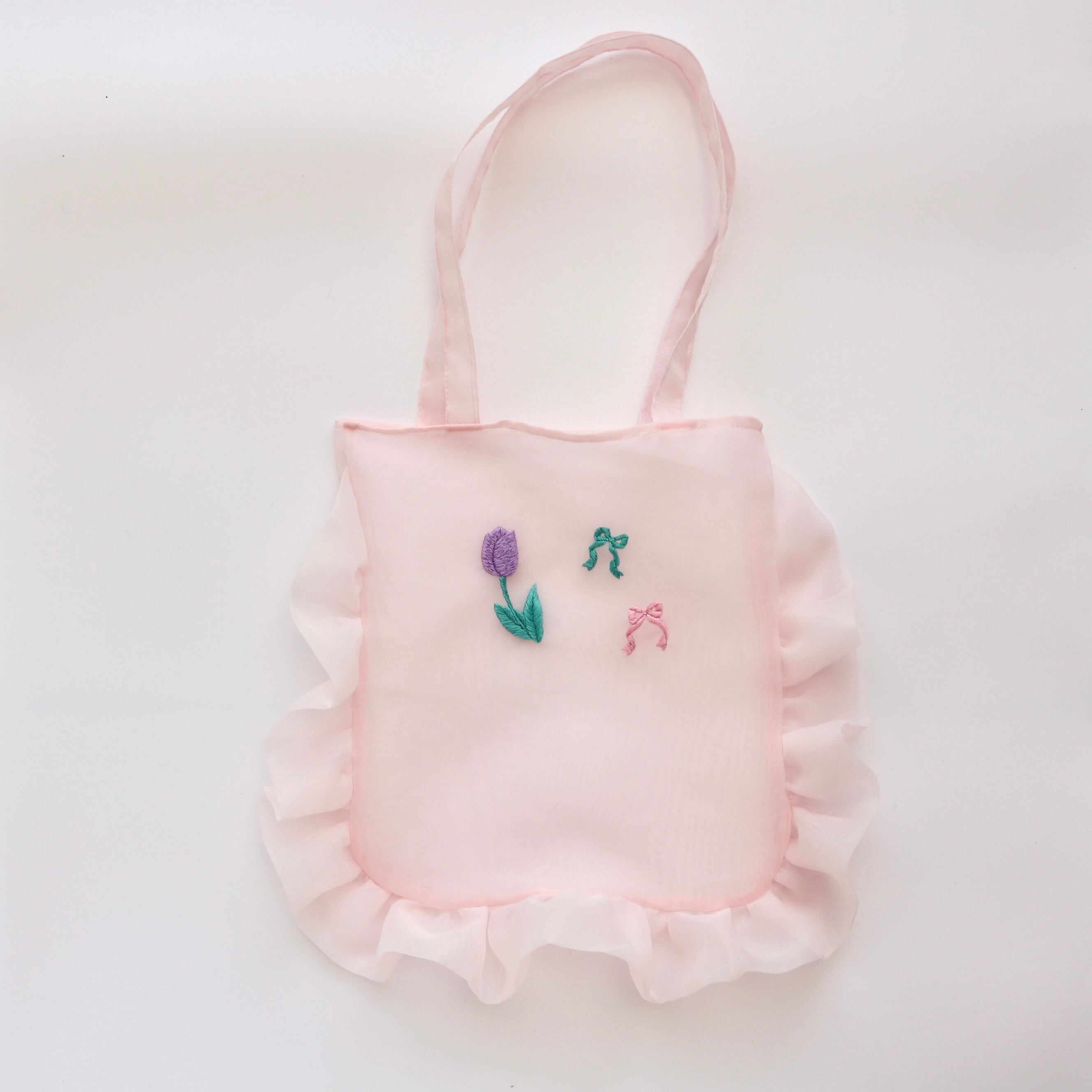 オーガンジートートバッグ(チューリップ刺繍)