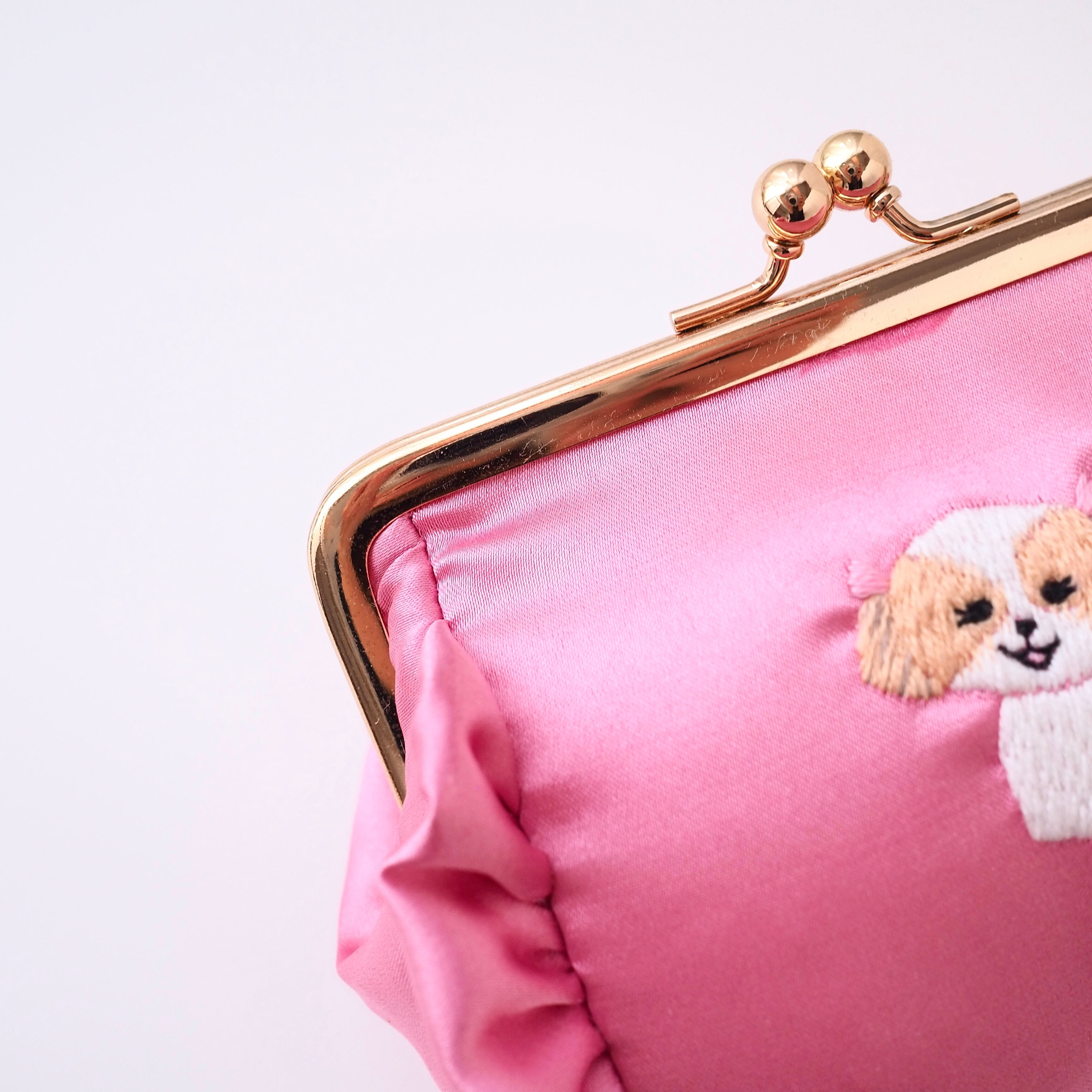 バッグの中に小さな癒しを。シーズー犬刺繍のピンクがま口ポーチ